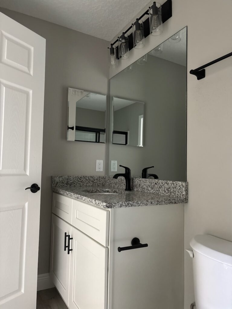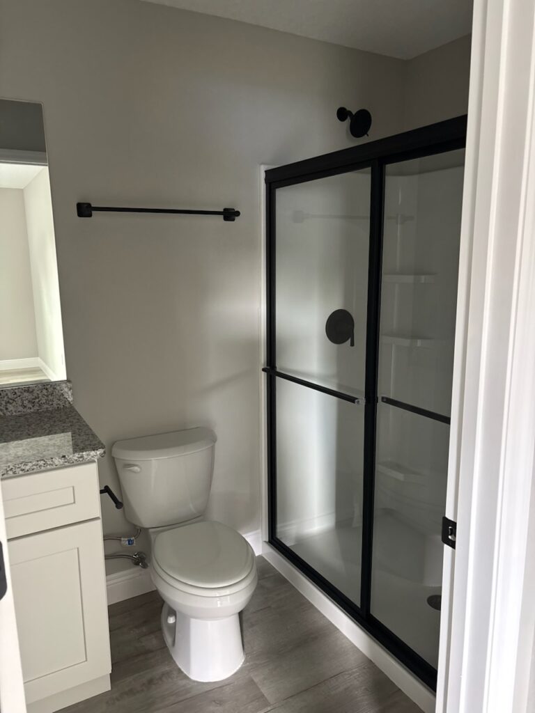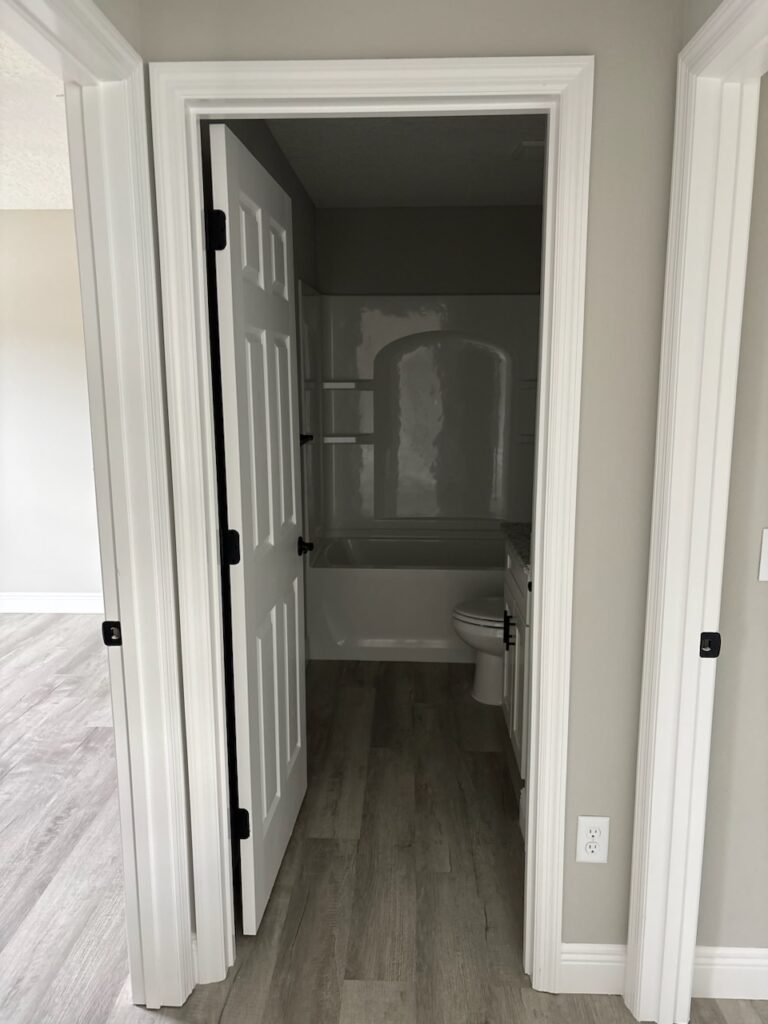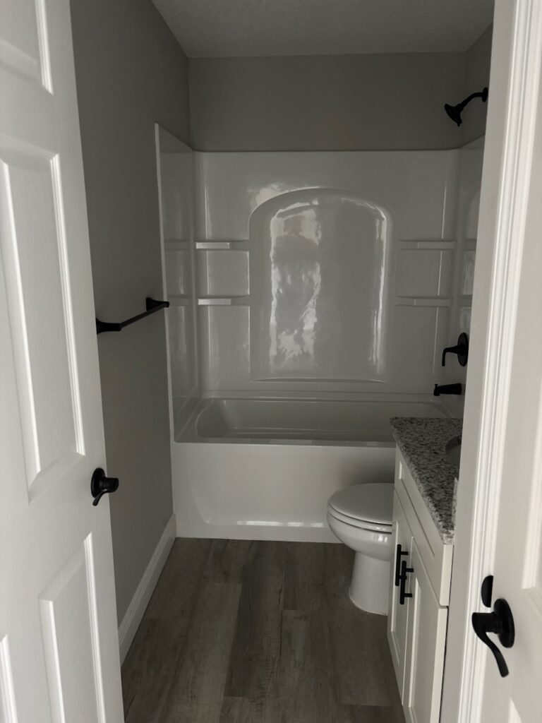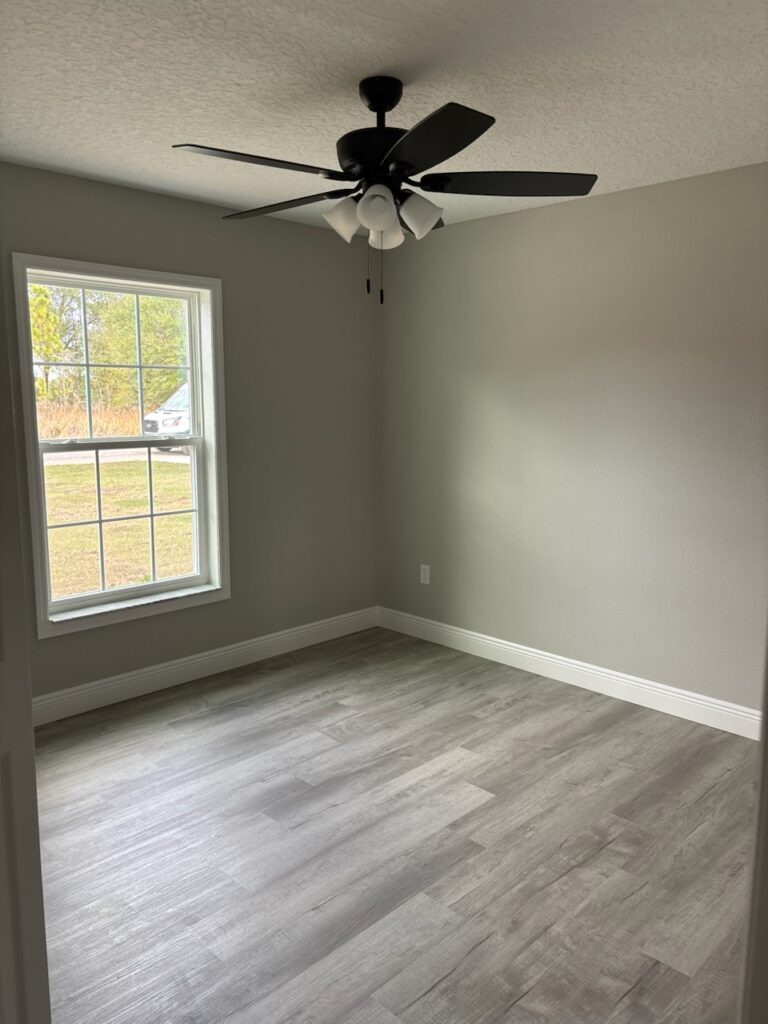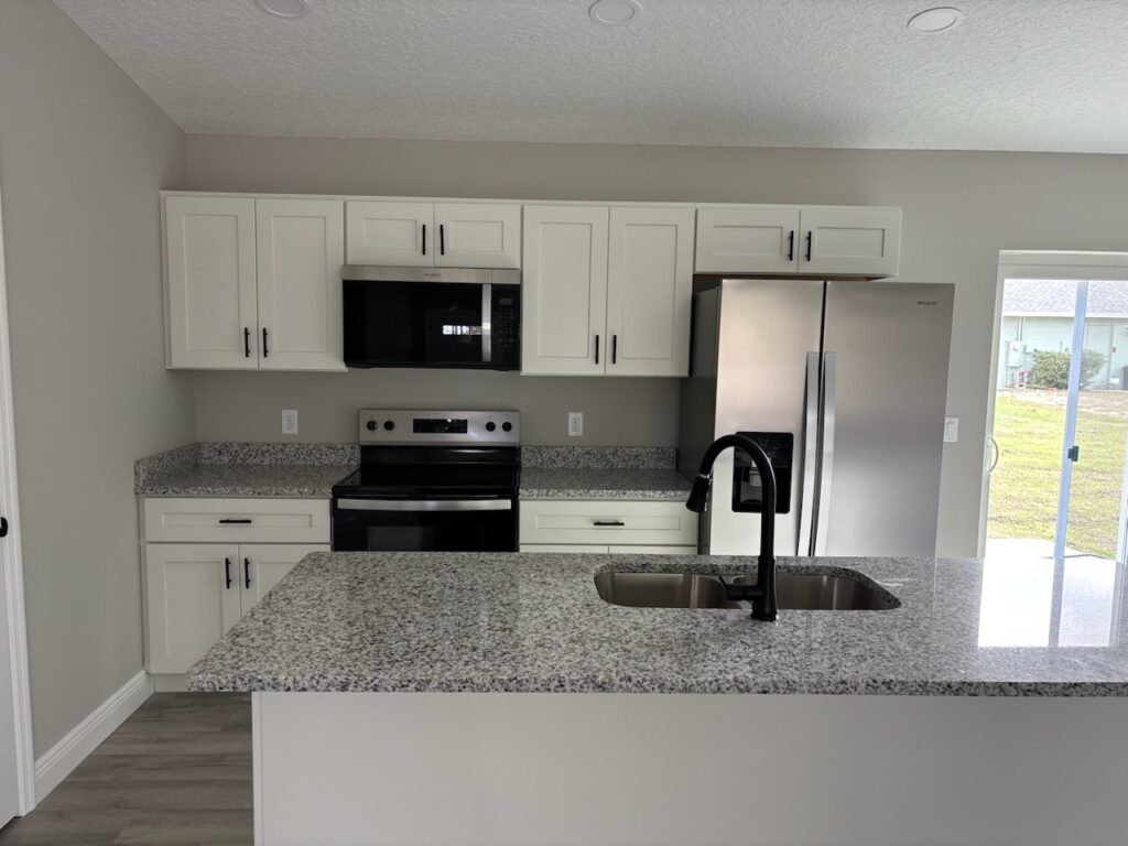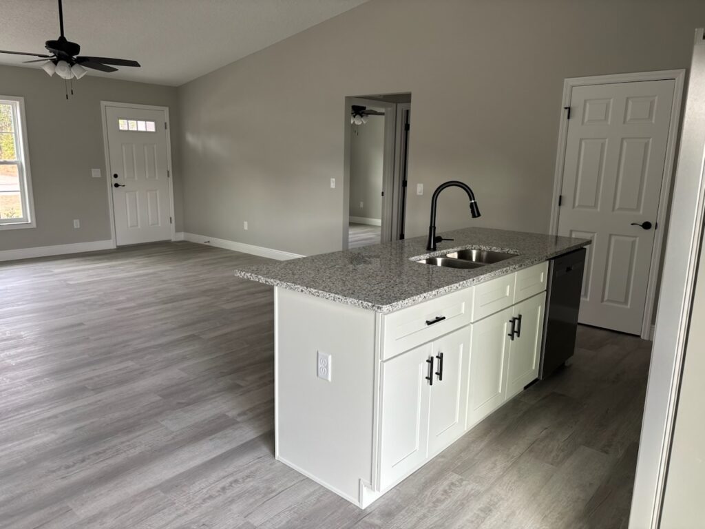 NEW CONSTRUCTION. MOVE-IN READY! This Largo Model is a well-designed 3 bedroom, 2 bathroom home offering 1,264 square feet of comfortable living space and is conveniently connected to a sewer system. Built with durable concrete block construction, this home features a 30-year architectural shingle roof, energy-efficient double-pane windows, and a 10-year structural warranty for peace of mind. The living room features a vaulted ceiling that creates an open, welcoming feel, flowing into a functional kitchen with stainless steel appliances, custom white shaker cabinets with soft-close drawers, granite countertops, and a practical pantry. Luxury vinyl plank flooring runs throughout the home, adding both style and easy maintenance. The master bathroom features a glass-enclosed shower, while the main bathroom offers a tub and shower combo, both with granite countertops. A dedicated laundry room adds everyday convenience. The home includes an attached one-car garage with an opener and remotes, plus an extra parking pad. Located in flood zone X, this property is high and dry and does not require flood insurance. With no HOA fees, you can enjoy true ownership freedom in a brand-new home designed for simple, comfortable living.