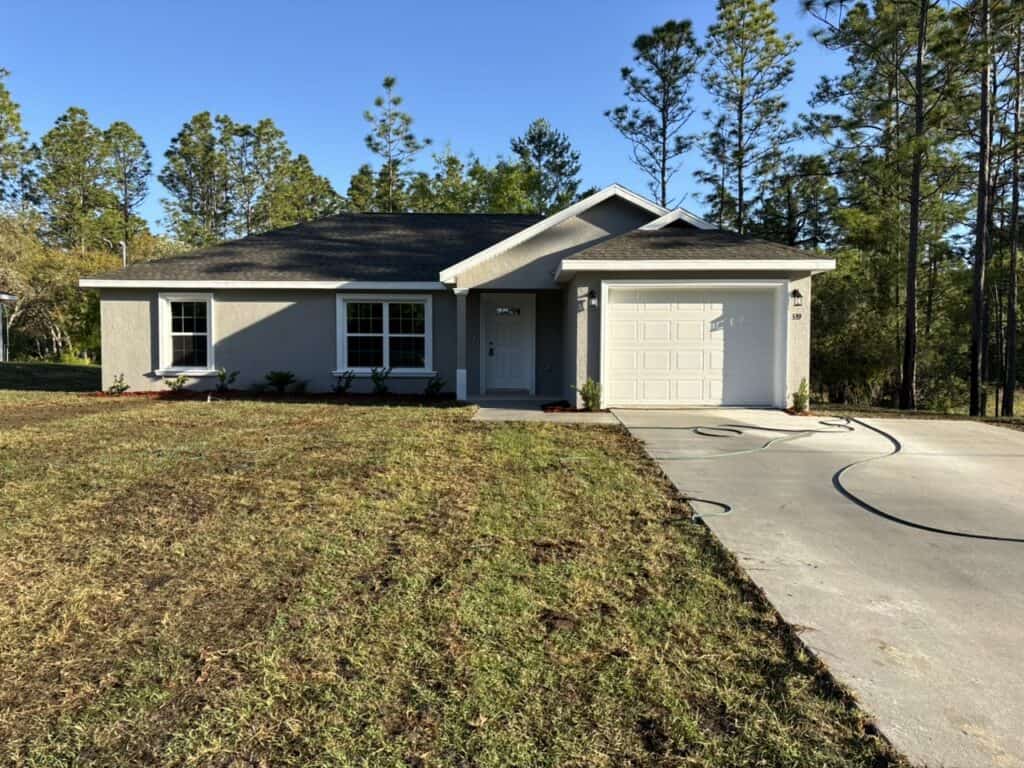 NEW CONSTRUCTION. MOVE-IN READY! Discover the New Largo Model in Citrus Springs, a beautifully designed 3-bedroom, 2-bathroom home with 1,264 square feet and a fresh craftsman-style front exterior that adds standout curb appeal. Built with concrete block construction, a 30-year architectural shingle roof, and energy-efficient double-pane windows, this home offers lasting quality and comfort along with a 10-year structural warranty. Inside, you will find additional interior lighting throughout, stainless steel appliances, custom white shaker cabinets with soft-close drawers, granite countertops in the kitchen and bathrooms, and a kitchen pantry for extra storage. The layout is bright and functional, with washer and dryer hookups, a covered back porch perfect for relaxing or entertaining, and an attached 2-car garage with an opener and remotes. Enjoy ownership freedom with no HOA fees, and rest easy in flood zone X, high and dry with no flood insurance required.