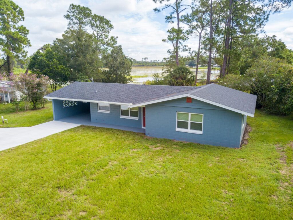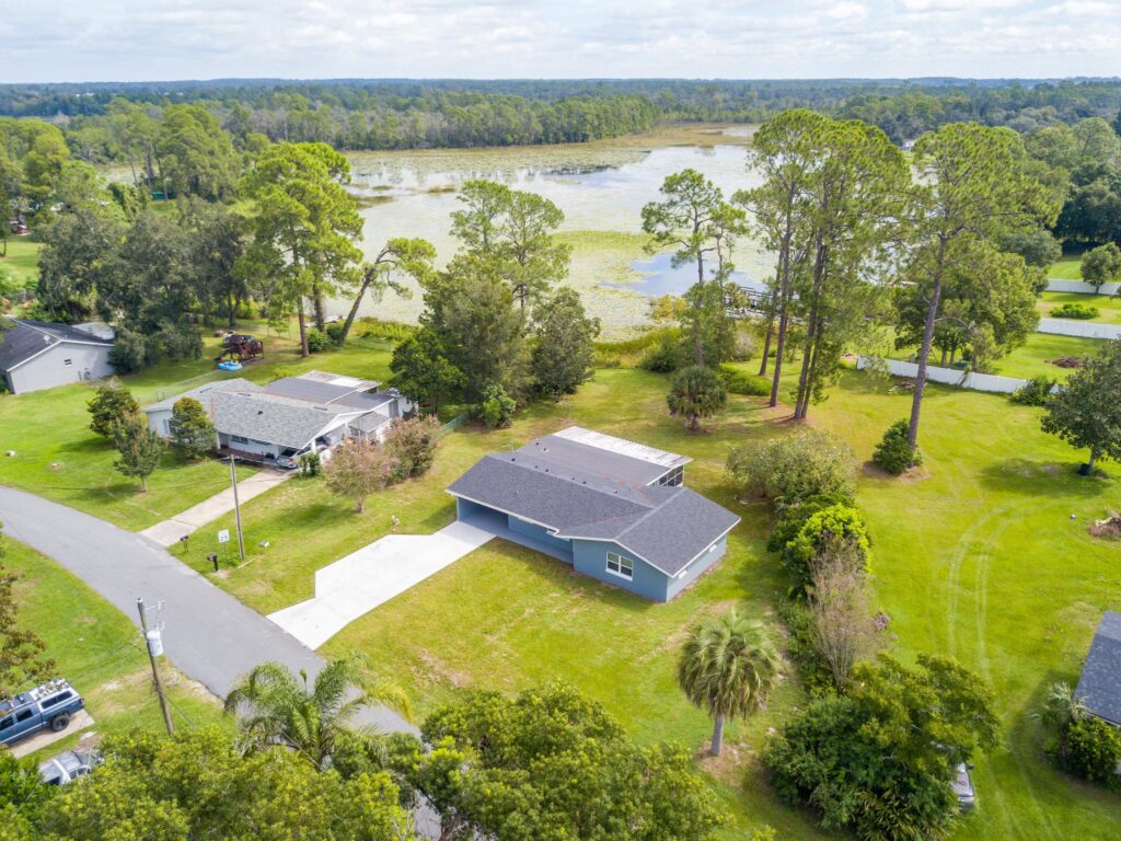 Discover this fully renovated 2 bedroom, 2 bath lakefront home located directly on Lake Bracy in Umatilla. Nearly every feature of this property has been updated, giving you peace of mind and modern comfort in a beautiful waterfront setting. Renovations include a brand-new roof, windows, exterior doors, cement fiberboard siding on the gables, aluminum soffit and fascia, exterior paint, and a concrete driveway. Inside, you’ll find new luxury vinyl plank flooring, quartz countertops, premium white shaker cabinets, stainless steel appliances, recessed lighting, light fixtures, interior doors and trim, plumbing fixtures, toilets, mirrors, and shelving. The home also features a new air conditioning system, a new water heater, new blown-in insulation, a new electrical panel, and new PEX plumbing throughout. A new water treatment system with a softener has also been installed. The laundry room is complete with its own cabinet and countertop package for added convenience. Enjoy lakefront living with your own water access and stunning views, all without HOA restrictions for ultimate freedom. Located in the county, which means a lower tax bill! This move-in-ready home offers the perfect blend of modern updates and a peaceful waterfront lifestyle.